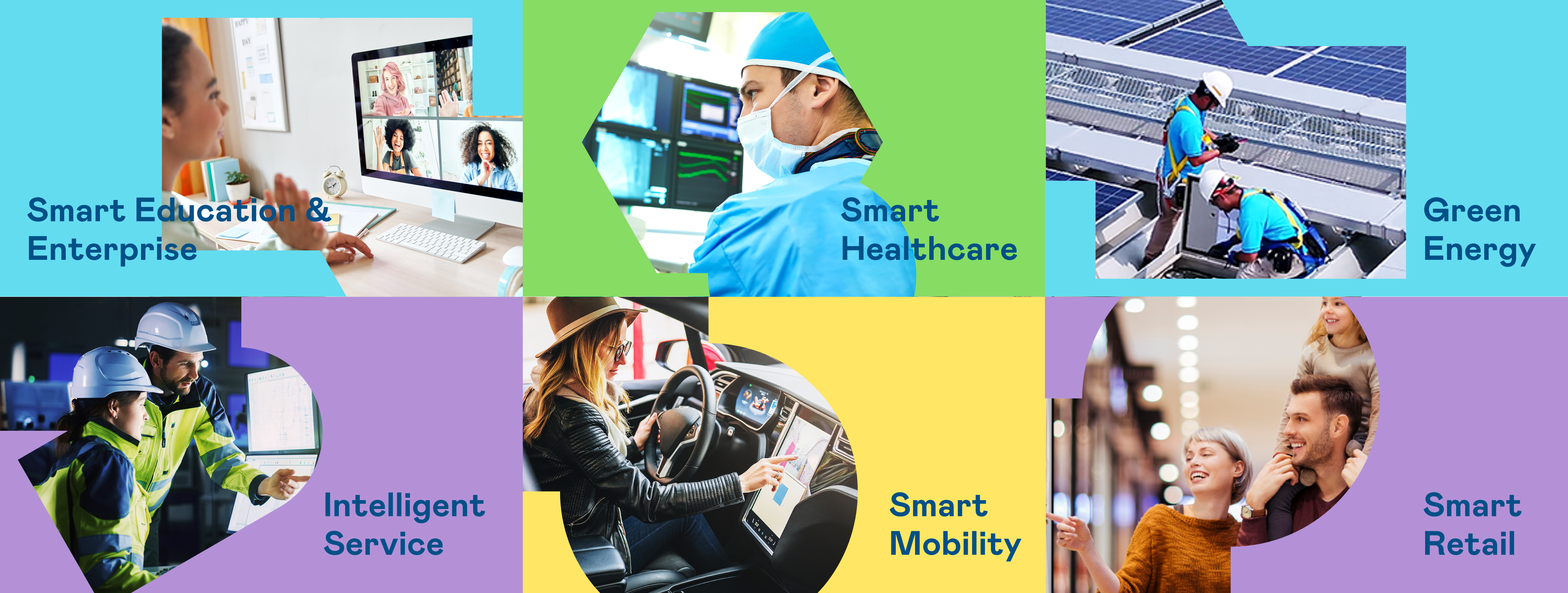 | 从稳重、信赖的MG不朽情缘蓝开创新色彩,注入象征智慧蓝、活力黄、创新紫、永续绿的品牌色及动态多变的几何图形,呼应不设限的「Possibilities」精神,代表多元的专业技术及领域,在碰撞中相互触动、融合、延伸,持续激荡出更多新的可能性。 |